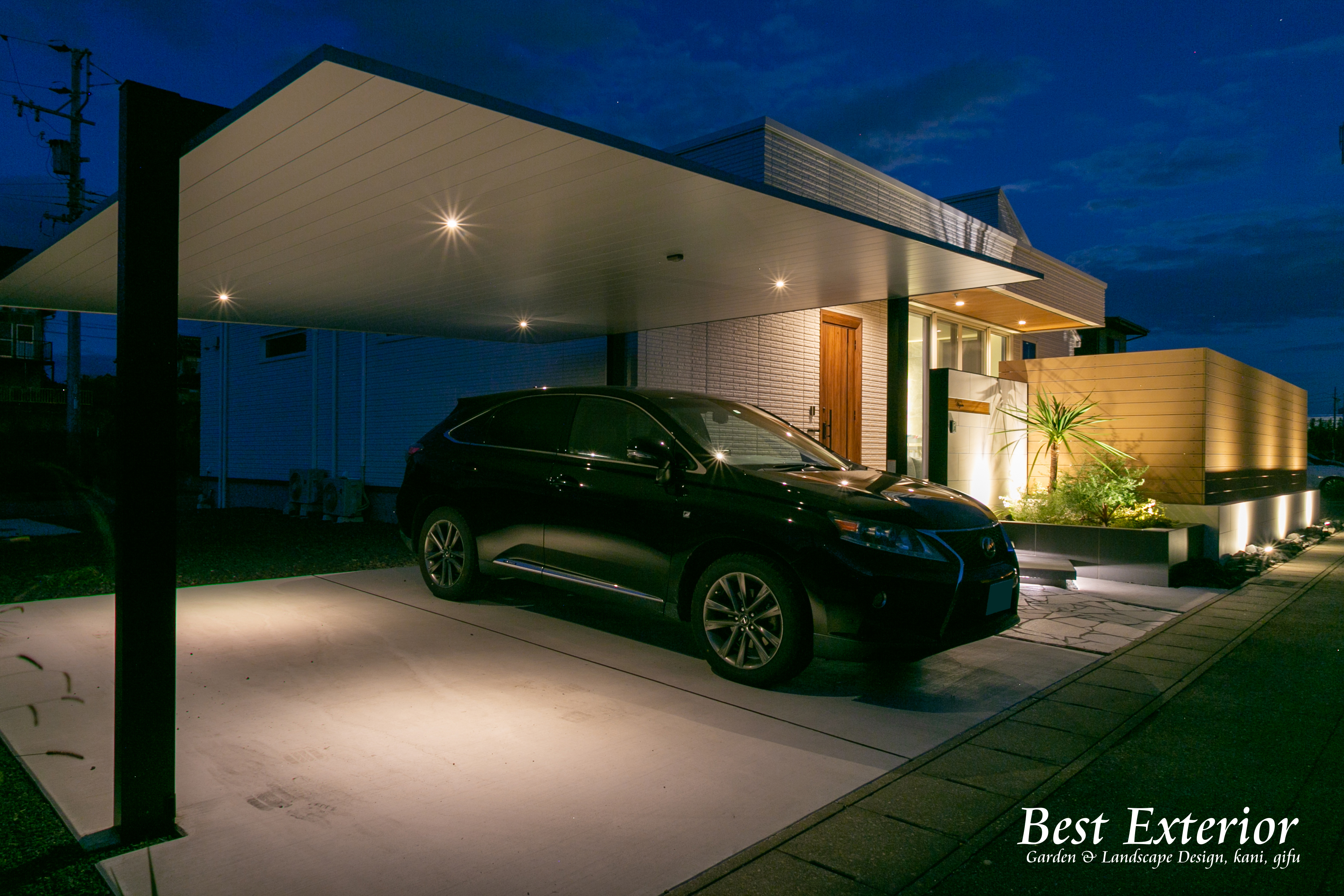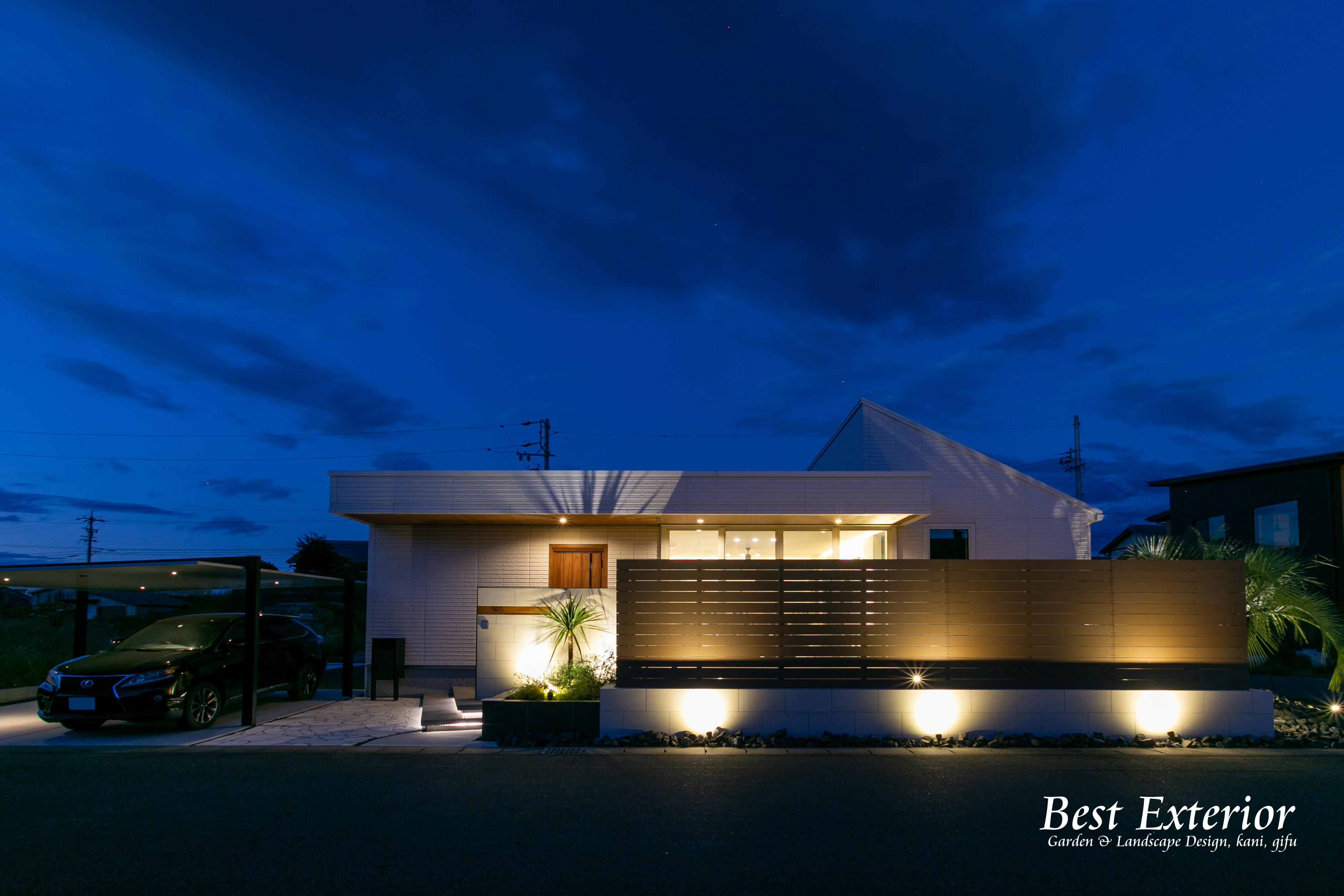 緑と照明で彩る街並みと繋がるセミクローズ外構
