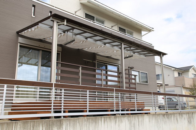 天然木ウッドデッキと木目調屋根テラスのリフォーム