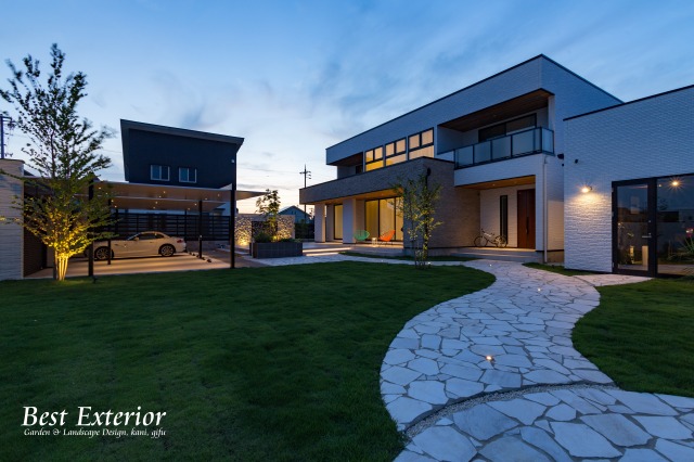 ビルトインガレージのある外構